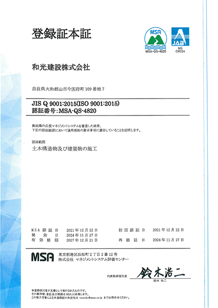 ISO9001 認証登録範囲 土木構造物及び建築物の施工