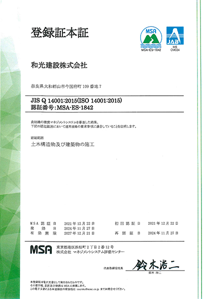 ISO14001 認証登録範囲 土木構造物及び建築物の施工